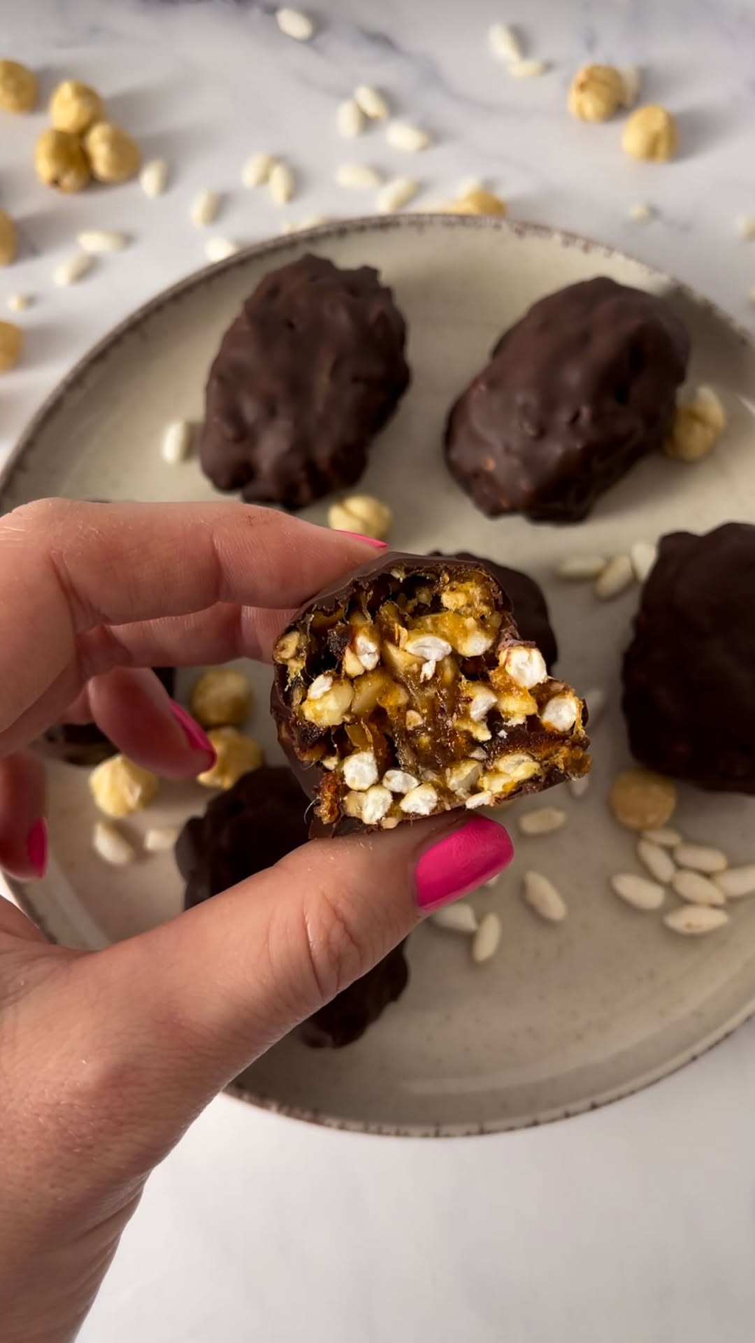 Vykoupejte je v rozpuštěné čokoládě (s trochou kokosového oleje pro tekutější konzistenci), nechte ztuhnout v lednici. Videorecept najdete zde