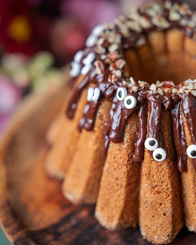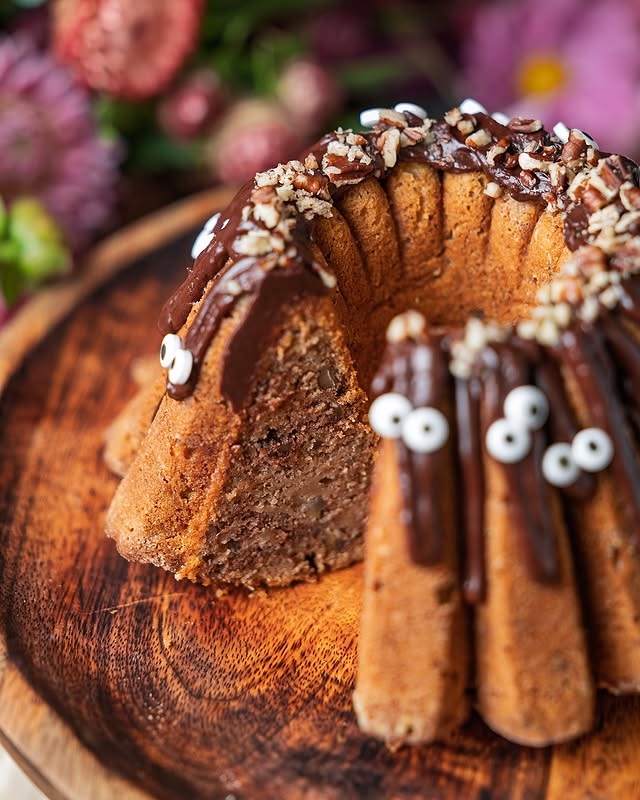 Halloweenská Pekanovo-jablečná bábovka.