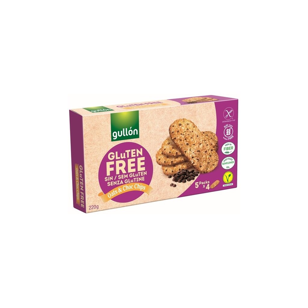 Oats & Choc Chips - Sušenky bez lepku s kousky čokolády. Speciálně připravená pro celiaky. S vysokým obsahem vlákniny. Gullón Gluten Free sušenky neobsahují lepek a obsahují slunečnicový olej s vysokým obsahem kyseliny olejové. Na výběr jsou různé druhy bezlepkových sušenek, které jsou vhodné při bezlepkové dietě nebo při zdravém životním stylu. Více informací a inspirace najdete na webové stránce www.gullon.cz