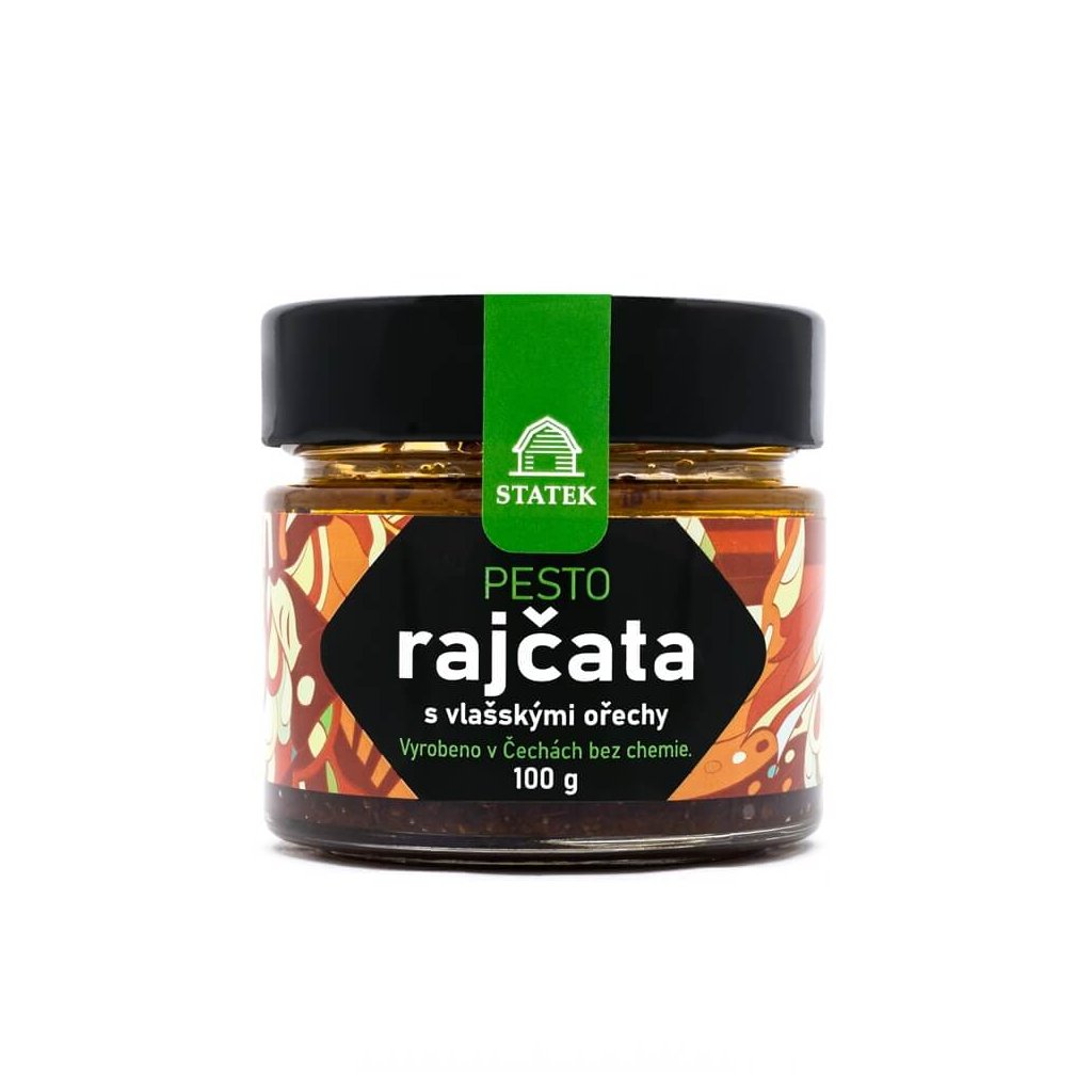 Ručně a šetrně vyráběné pesto ze sušených rajčat v Čechách, rajčata nejsou sířená, jsou bez chemických konzervantů, aromat, lepku a GMO.